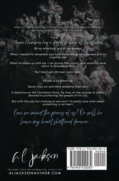 Maxon Chambers has a way of stealing all the attention. All my affection, and all my dreams. What I needed to remember was he'd stolen my good judgment and my virginity, too. When he broke up with me, I ran across the country and swore I'd never return to Broadshire Rim. But here I am, thirteen years later. Maxon is all grown up. Sexier than sin and more tempting than ever. A detective on the Charleston force, he lives on the outside of safety, devoted to protecting the people of his city. But with the way he's looking at me now? I'm pretty sure what needs protecting is my heart. Can we mend the pieces of us? Or will he leave my heart shattered forever . . .
