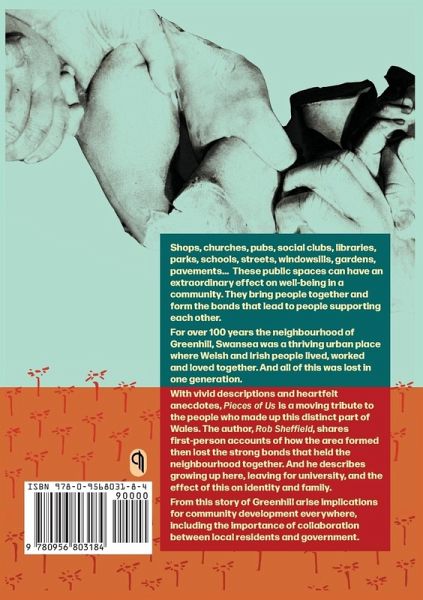 Shops, churches, pubs, social clubs, libraries, parks, schools, streets, windowsills, gardens, pavements... These public spaces can have an extraordinary effect on well-being in a community. They bring people together and form the bonds that lead to people supporting each other. With vivid descriptions and heartfelt anecdotes, Pieces of Us is a moving tribute to the people who made up this distinct part of Wales. The author, Rob Sheffield, shares first-person accounts of how the area formed then lost the strong bonds that held the neighbourhood together. And he describes growing up here, leaving for university, and the effect of this on identity and family. From this story of Greenhill arise implications for community development everywhere, including the importance of collaboration between local residents and government.