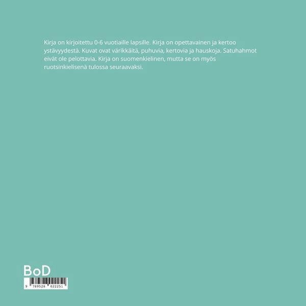 Kirja on kirjoitettu 0-6 vuotiaille lapsille. Kirja on opettavainen ja kertoo ystävyydestä. Kuvat ovat värikkäitä, puhuvia, kertovia ja hauskoja. Satuhahmot eivät ole pelottavia. Kirja on suomenkielinen, mutta se on myös ruotsinkielisenä tulossa seuraavaksi.