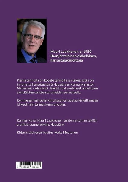 Pieniä tarinoita, jotka on kirjoitettu harjoitustöinä Hausjärven kunnankirjaston Melleriinit -ryhmässä. Tekstit ovat syntyneet annettujen yksittäisten sanojen tai aiheiden perusteella. Kymmenen minuutin kirjoitusaika haastaa kirjoittamaan lyhyesti niin tarinat kuin runotkin.