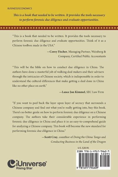 China has historically cut itself off from interaction with the global business community for all but the last thirty-eight years. During this isolation, Chinese society and businesses developed their own morality, ethics, cultural leanings, and business practices. Philosophically, culturally, and business-wise Chinese companies operate on a different plane than businesses in other areas of the world. As a result, the methodology of performing forensic due diligence in China can vary widely from that performed in other countries. Forensic due diligence in China is challenging and requires a comprehensive knowledge of the country's complex accounting, legal, and business issues. Alan Refkin and David Dodge will provide you with the tools necessary to delve deep into the business and financial fabric of corporate China, allowing readers to pierce the wall of secrecy surrounding Chinese businesses.