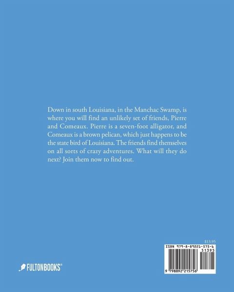 Down in south Louisiana, in the Manchac Swamp, is where you will find an unlikely set of friends, Pierre and Comeaux. Pierre is a seven-foot alligator, and Comeaux is a brown pelican, which just happens to be the state bird of Louisiana. The friends find themselves on all sorts of crazy adventures. What will they do next? Join them now to find out.