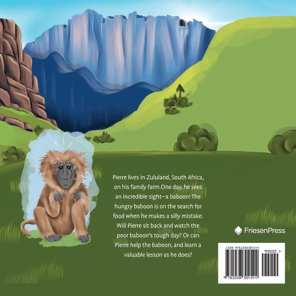 Pierre lives in Zululand, South Africa, on his family farm. One day, he sees an incredible sight-a baboon! The hungry baboon is on the search for food when he makes a silly mistake. Will Pierre sit back and watch the poor baboon's tough day? Or can Pierre help the baboon, and learn a valuable lesson as he does?