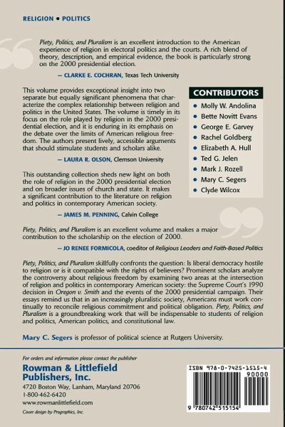 Piety, Politics, and Pluralism skillfully confronts the question: Is liberal democracy hostile to religion or is it compatible with the rights of believers? Prominent scholars analyze the controversy about religious freedom by examining two areas at the intersection of religion and politics in contemporary American society: the Supreme Court's 1990 decision in Oregon v. Smith and the events of the 2000 presidential campaign. Their essays remind us that in an increasingly pluralistic society, Americans must work continually to reconcile religious commitment and political obligation. Piety, Politics, and Pluralism is a groundbreaking work that will be indispensable to students of religion and politics, American politics, and constitutional law.