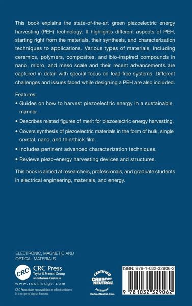 Features: Guides on how to harvest piezoelectric energy in a sustainable mannerDescribes related figures of merit for piezoelectric energy harvestingCovers synthesis of piezoelectric materials in the form of bulk, single crystal, nano, and thin/thick filmIncludes pertinent advanced characterization techniquesReviews piezo-energy harvesting devices and structures This book is aimed at researchers, professionals, and graduate students inelectrical engineering, materials, and energy.