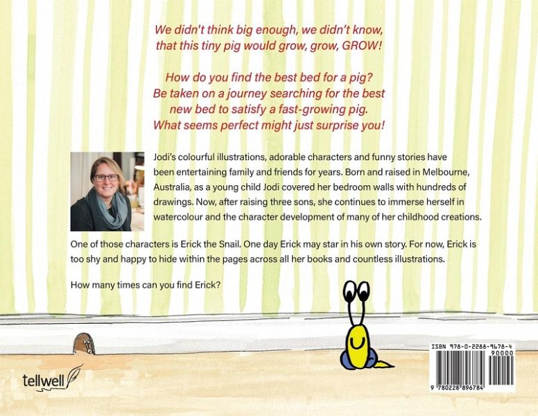 Jodi's colourful illustrations, adorable characters and funny stories have been entertaining family and friends for years. Born and raised in Melbourne, Australia, as a young child Jodi covered her bedroom walls with hundreds of drawings. Now, after raising three sons, she continues to immerse herself in watercolour and the character development of many of her childhood creations. One of those characters is Erick the Snail. One day Erick may star in his own story. For now, Erick is too shy and happy to hide within the pages across all her books and countless illustrations. How many times can you find Erick?