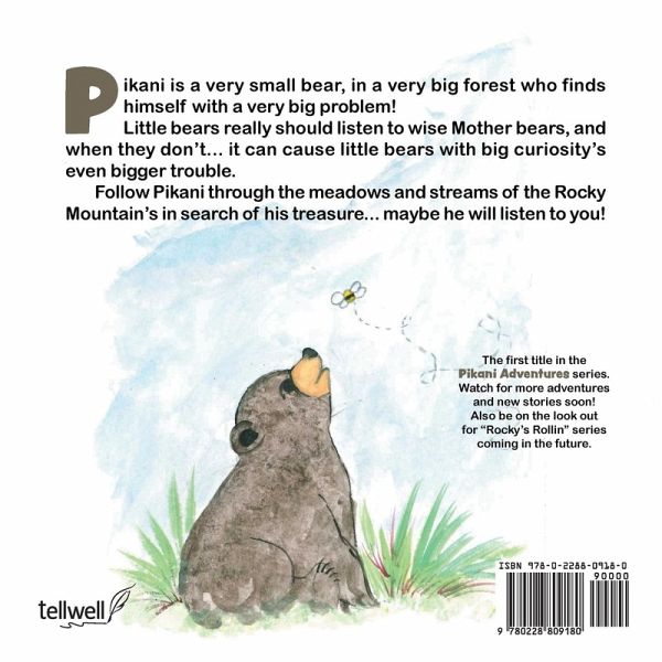 Canadian author Marie Landles introduces you to the adventures of Pikani, a small black bear in the very large forests of the Canadian Rocky Mountains. Pikani is a very small bear, in a very big forest who finds himself with a very big problem! Little bears really should listen to wise Mother bears, and when they don't...it can cause little bears with big curiosity's even bigger trouble. Follow Pikani through the meadows and streams of the Rocky Mountain's in search of his treasure...maybe he will listen to you!