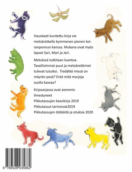 kirja vie lukijan metsäretkelle kymmenen pienen koiranpennun kanssa. Mukana ovat myös lapset Sari, Mari ja Jeri. Jokaisesta koiranpennusta on iso kuva erilaisessa metsäympäristössä. Pennut havainnoivat retkellään puita ja metsän eläimiä, sekä muita metsästä löytyviä luonnon ihmeitä. Isojen kuvien lisäksi joka aukeamalla on tarkkoja pikkukuvia ja niihin liittyviä tietoja. Aiemmin kirjasarjassa ovat ilmestyneet Pikkutassujen kasvikirja 2019 Pikkutassut tarinoivat 2019 Pikkutassujen ötököitä ja otuksia 2020