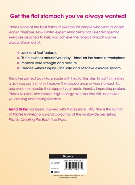 'Get the flat stomach you've always wanted!' Pilates is one of the best forms of exercise for people who want a longer, leaner physique. Now Pilates expert Anna Selby has selected specific exercises designed to help you achieve the toned stomach you've always dreamed of. ¿ Look and feel fantastic ¿ Fit the routines around your day - ideal for the home or the workplace ¿ Improve core strength and posture ¿ Exercise without injury - the safe and effective exercise system This is the perfect book for people with hectic lifestyles: in just 15 minutes a day you can not only improve the appearance of your stomach but also work the muscles that support your back, thereby improving posture. Pilates is a safe, low-impact, high-energy exercise that will soon have you looking and feeling fantastic.