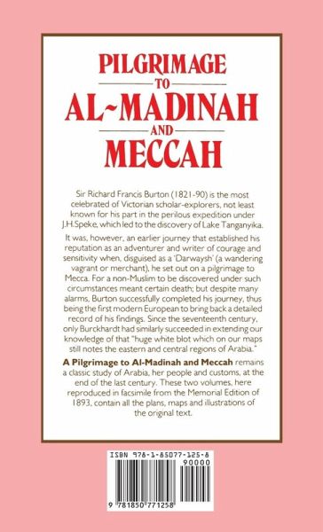 Sir Richard Francis Burton (1821-90) is the most celebrated of Victorian scholar-explorers, not least known for his part in the perilous expedition under J H Speke, which led to the discovery of Lake Tanganyika. It was, however, an earlier journey that established his reputation as an adventurer and writer of courage and sensitivity when, disguised as a 'Darwaysh' (a wandering vagrant or merchant), he set out on a pilgrimage to Mecca. For a non-Muslim to be discovered under such circumstances meant certain death; but despite many alarms, Burton successfully completed his journey, thus being the first modern European to bring back a detailed record of his findings. Since the seventeenth century, only Burckardt had similarly succeeded in extending our knowledge of that "huge white blot which on our maps still notes the eastern and central regions of Arabia." A Pilgrimage to Al-Madinah and Meccah remains a classic study of Arabia, her people and customs, at the end of the 18th century. These two volumes, here reproduced in facsimile from the Memorial Editions of 1893, contain all the plans, maps and illustrations of the original text.