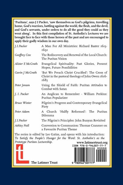 'Puritans', says J I Packer, 'saw themselves as God's pilgrims, travelling home, God's warriors, battling against the world, the flesh, and the devil, and God's servants, under orders to do all the good they could as they went along'. In this fi rst compilation of St. Antholin's Lectures we are brought face to face with those heroes of the past and are encouraged to apply their godly wisdom in our own day. * J.I.Packer: A Man For All Ministries: Richard Baxter 1615-1691 * Geoffrey Cox: The Rediscovery and Renewal of the Local Church: The Puritan Vision * Alister E McGrath: Evangelical Spirituality: Past Glories, Present Hopes, Future Possibilities * Gavin J McGrath: 'But We Preach Christ Crucified': The Cross of Christ in the pastoral theology of John Owen 1616-1683 * Peter Jensen: Using the Shield of Faith: Puritan Attitudes to Combat with Satan * J. I. Packer: An Anglican to Remember - William Perkins: Puritan Popularizer * Bruce Winter: Pilgrim's Progress and Contemporary Evangelical Piety * Peter Adam: A Church 'Halfly Reformed': The Puritan Dilemma * J.I.Packer: The Pilgrim's Principles: John Bunyan Revisited * Ashley Null: Conversion to Communion: Thomas Cranmer on a Favourite Puritan Theme The series is edited by Lee Gatiss, and opens with his introduction: To Satisfy the People's Hunger for the Word: St. Antholin's as the Prototype Puritan Lectureship.