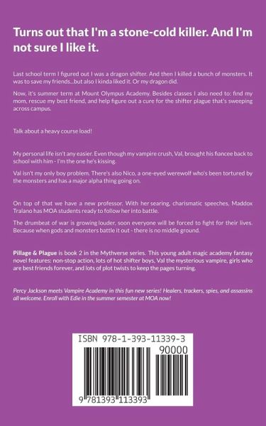 Turns out I'm a stone-cold killer. And I'm not sure I like it. Last school term I figured out I was a dragon shifter. And then I killed a bunch of monsters. It was to save my friends...but also I kinda liked it. Or my dragon did. Now, it's summer term at Mount Olympus Academy. Besides classes I also need to: find my mom, rescue my best friend, and help figure out a cure for the shifter plague that's sweeping across campus. Talk about a heavy course load! My personal life isn't any easier. Even though my vampire crush, Val, brought his fiancee back to school with him - I'm the one he's kissing. Val isn't my only boy problem. There's also Nico, a one-eyed werewolf who's been tortured by the monsters and has a major alpha thing going on. On top of that we have a new professor. With her searing, charismatic speeches, Maddox Tralano has MOA students ready to follow her into battle. The drumbeat of war is growing louder, soon everyone will be forced to fight for their lives. Because when gods and monsters battle it out - there is no middle ground. Pillage & Plague is book 2 in the Mythverse series. This young adult magic academy fantasy novel features: non-stop action, lots of hot shifter boys, Val the mysterious vampire, girls who are best friends forever, and lots of plot twists to keep the pages turning. Percy Jackson meets Vampire Academy in this fun new series! Healers, trackers, spies, and assassins all welcome. One-click now to enroll with Edie in the summer semester at MOA!