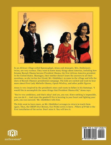 In African village Kponouglopé, Atsou and Atsoupée, Mrs. Dzidzinyo's twins are very curious and want to know many things about America including how Senator Barack Obama became President Obama, the first African-America president in the United States. Mamagan, their Mother doesn't know as much as they do, so she invites her friend Mr. Gbédédovi who comes to the village and tells the story of Barack Obama's presidential campaign. The kids are excited and want to hear more about Michelle Obama the First Lady, Oprah Winfrey and many other stars. Atsou is very inspired by the president and wants to follow his footsteps. "I would like to do the same thing like President Obama" Atsou said. "You're very ambitious boy and it is okay! Yes you can! Since nothing is impossible you can do it... since the goodwill fire is burning in your heart and lighting your path, you can succeed." Mr. Gbédédovi said. The kids want to learn more; Mr. Gbédédovi arranges other rounds for them. The series OHOP (Our Heroes, Our Pride) is born. Pillars of Pride is the beginning of the series. Don't miss it. You will love it.