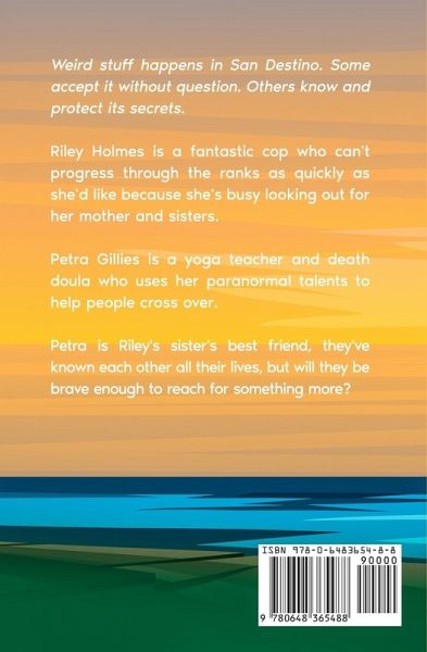 Weird stuff happens in San Destino. Some accept it without question. Others know and protect its secrets. Riley Holmes is a fantastic cop who can't progress through the ranks as quickly as she'd like because she's busy looking out for her mother and sisters. Petra Gillies is a yoga teacher and death doula who uses her paranormal talents to help people cross over. Petra is Riley's sister's best friend, they've known each other all their lives, but will they be brave enough to reach for something more?