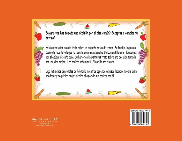 Have you ever made a decision for the greater good? Do you accept or change your destiny? This heartwarming tale is about a little country mouse. His family reaches a lifelong dream that does not turn out as expected. Meet Piloncillo - that's PEEL-ohn-SEE-yoh - like the pure cane sugar. His adventure story is all about a decision made for the sake of a better life. "It is for the greater good. Parents know best." Piloncillo tells us. Follow along Piloncillo's personal struggles as he learns valuable lessons about obeying and following rules because of his parents' love for him.