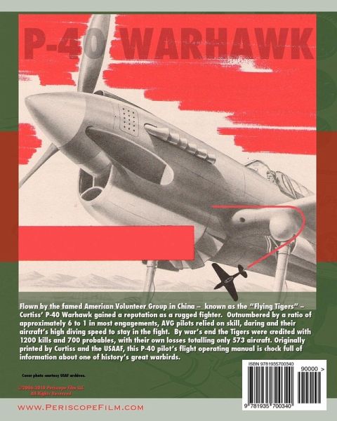 Flown by the American Volunteer Group in China known as the "Flying Tigers", the P-40 Warhawk earned a reputation for its toughness in combat. Facing odds of 6 to 1 in most combat situations, AVG pilots relied on their skill, daring and their aircraft's superior diving speed to achieve victory. By war's end the Tigers had destroyed more than 1200 Japanese planes, with another 700 listed as probables. Their own losses came to 573 aircraft. Originally printed by the U.S. Army Air Force for pilots transitioning to the P-40, this flight manual contains detailed information about one of history's great planes. Originally classified as "restricted", the manual was declassified long ago and is here reprinted in book form. Some color images appear in black and white, and some pages have been slightly reformatted. Care has been taken however to preserve the integrity of the text.