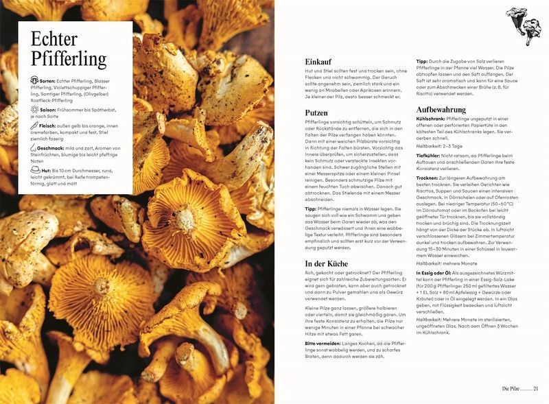 Zusätzlich verraten übersichtliche Porträts der wichtigsten Speisepilze alles über die richtige Reinigung, Lagerung und Zubereitung. Hier finden sowohl erfahrene Pilzsammler_innen als auch neugierige Pilzfans wertvolle Tipps und jede Menge Inspiration.