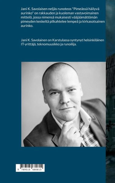 Jani K. Savolaisen neljäs runoteos "Pimeässä häilyvä aurinko" on rakkauden ja kuoleman vastavoimainen mittelö, jossa nimensä mukaisesti vääjäämättömän pimeyden keskeltä pilkahtelee lempeä ja kirkasotsainen aurinko.