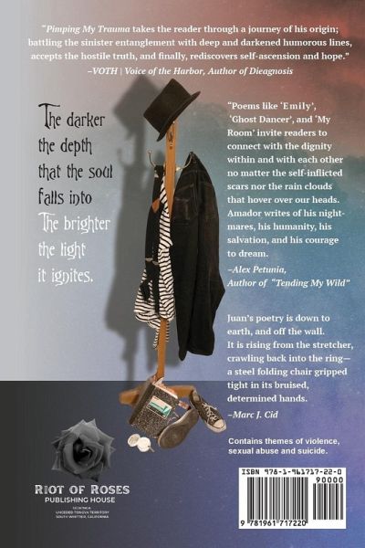 Pimping My Trauma is a courageous poetry collection that serves as a defiance of the stigma of having sexual trauma. This book challenges the social norm of a blue-collar environment where sexual survivors silence themselves in fear of being seen as defects in a non-benevolent society. As a survivor, the poet speaks through this collection about the need for intimacy and control, while wrestling with identity and self-deprivation. This collection of poems results in living life afloat with a desperate need to be grounded and reclaim power.