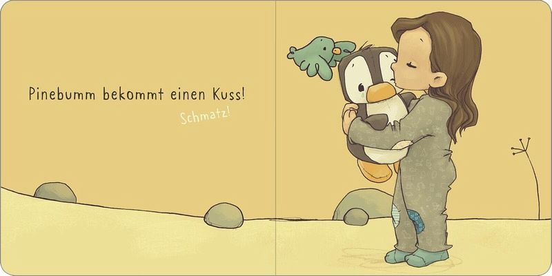 Pinebumm, der kleine Pinguin, ist hingefallen. Oje! Und was hilft dem kleinen Pinguin, seine Tränchen zu trocknen? Richtig - ein dicker Kuss von Anouk!