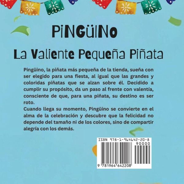 Penquino, the tiniest piñata in the shop, dreams of being chosen for a party like the bigger piñatas-but no one picks her. Determined to bring joy, he bravely steps forward, knowing piñatas are meant to be broken. When his moment arrives, Penquino learns happiness isn't about size or strength but fulfilling her purpose and sharing joy.