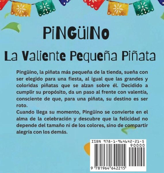 Pingüino, la piñata más pequeña de la tienda, sueña con ser elegido para una fiesta, al igual que las grandes y coloridas piñatas que se alzan sobre él. Decidido a cumplir su propósito, da un paso al frente con valentía, consciente de que, para una piñata, su destino es ser roto. Cuando llega su momento, Pingüino se convierte en el alma de la celebración y descubre que la felicidad no depende del tamaño ni de los colores, sino de compartir alegría con los demás.