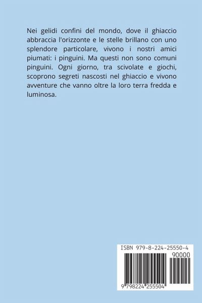 Nei gelidi confini del mondo, dove il ghiaccio abbraccia l'orizzonte e le stelle brillano con uno splendore particolare, vivono i nostri amici piumati: i pinguini. Ma questi non sono comuni pinguini. Ogni giorno, tra scivolate e giochi, scoprono segreti nascosti nel ghiaccio e vivono avventure che vanno oltre la loro terra fredda e luminosa.