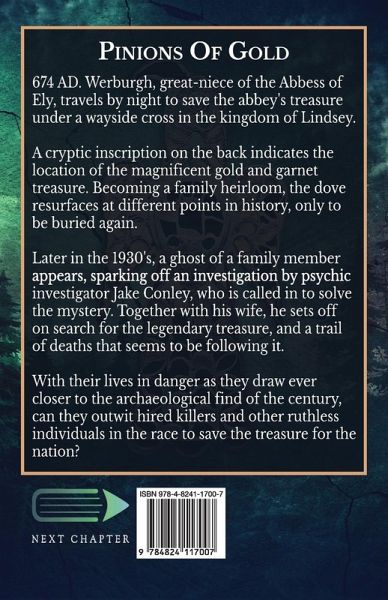 674 AD. Werburgh, great-niece of the Abbess of Ely, travels by night to save the abbey's treasure under a wayside cross in the kingdom of Lindsey. A cryptic inscription on the back indicates the location of the magnificent gold and garnet treasure. Becoming a family heirloom, the dove resurfaces at different points in history, only to be buried again. Later in the 1930's, a ghost of a family member appears, sparking off an investigation by psychic investigator Jake Conley, who is called in to solve the mystery. Together with his wife, he sets off on search for the legendary treasure, and a trail of deaths that seems to be following it. With their lives in danger as they draw ever closer to the archaeological find of the century, can they outwit hired killers and other ruthless individuals in the race to save the treasure for the nation?
