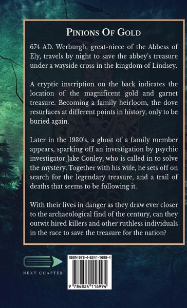 674 AD. Werburgh, great-niece of the Abbess of Ely, travels by night to save the abbey's treasure under a wayside cross in the kingdom of Lindsey. A cryptic inscription on the back indicates the location of the magnificent gold and garnet treasure. Becoming a family heirloom, the dove resurfaces at different points in history, only to be buried again. Later in the 1930's, a ghost of a family member appears, sparking off an investigation by psychic investigator Jake Conley, who is called in to solve the mystery. Together with his wife, he sets off on search for the legendary treasure, and a trail of deaths that seems to be following it. With their lives in danger as they draw ever closer to the archaeological find of the century, can they outwit hired killers and other ruthless individuals in the race to save the treasure for the nation?
