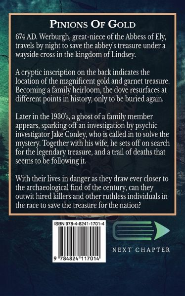 674 AD. Werburgh, great-niece of the Abbess of Ely, travels by night to save the abbey's treasure under a wayside cross in the kingdom of Lindsey. A cryptic inscription on the back indicates the location of the magnificent gold and garnet treasure. Becoming a family heirloom, the dove resurfaces at different points in history, only to be buried again. Later in the 1930's, a ghost of a family member appears, sparking off an investigation by psychic investigator Jake Conley, who is called in to solve the mystery. Together with his wife, he sets off on search for the legendary treasure, and a…mehr