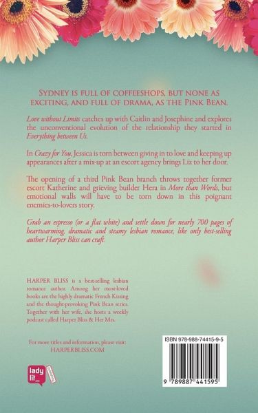 Sydney is full of coffeeshops, but none as exciting, and full of drama, as the Pink Bean. Love without Limits catches up with Caitlin and Josephine and explores the unconventional evolution of the relationship they started in Everything between Us. In Crazy for You, Jessica is torn between giving in to love and keeping up appearances after a mix-up at an escort agency brings Liz to her door. The opening of a third Pink Bean branch throws together former escort Katherine and grieving builder Hera in More than Words, but emotional walls will have to be torn down in this poignant enemies-to-lovers story. Grab an espresso (or a flat white) and settle down for nearly 700 pages of heartwarming, dramatic and steamy lesbian romance, like only best-selling author Harper Bliss can craft.