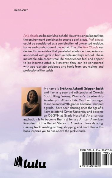 Pink clouds are beautiful to behold. However, air pollution from the environment combines to create a pink cloud. Pink clouds could be considered as a combination of unwanted residue, toxins and combustion of the world. The title Pink Clouds was derived from an idea that paralleled adolescent experiences associated with girls in both middle and high school. These inevitable adolescent real-life experiences feel and appear to be insurmountable. However, they can be conquered with appropriate guidance and tools from counselors and professional therapists