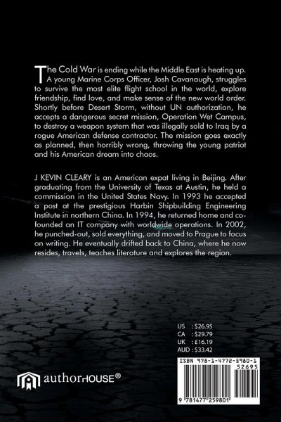 The Cold War is ending while the Middle East is heating up. A young Marine Corps Officer, Josh Cavanaugh, struggles to survive the most elite flight school in the world, explore friendship, find love, and make sense of the new world order. Shortly before Desert Storm, without UN authorization, he accepts a dangerous secret mission, Operation Wet Campus, to destroy a weapon system that was illegally sold to Iraq by a rogue American defense contractor. The mission goes exactly as planned, then horribly wrong, throwing the young patriot and his American dream into chaos.
