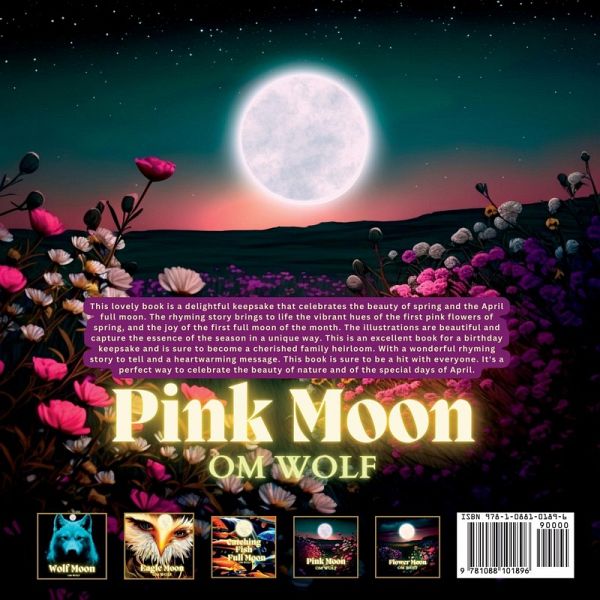 This lovely book is a delightful keepsake that celebrates the beauty of spring and the April full moon. The rhyming story brings to life the vibrant hues of the first pink flowers of spring, and the joy of the first full moon of the month. The illustrations are beautiful and capture the essence of the season in a unique way.This is an excellent book for a birthday keepsake and is sure to become a cherished family heirloom. With a wonderful story to tell and a heart-warming message. This book is sure to be a hit with everyone. It's a perfect way to celebrate the beauty of nature and of the special days of April.