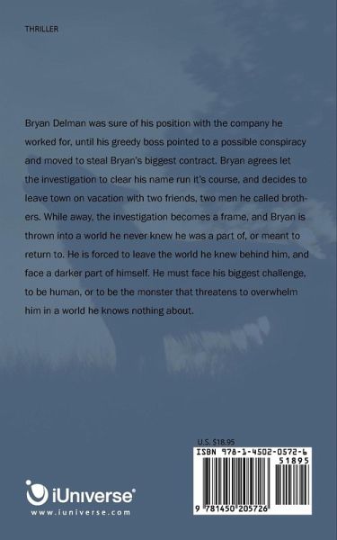 Bryan Delman was sure of his position with the company he worked for, until his greedy boss pointed to a possible conspiracy and moved to steal Bryan's biggest contract. Bryan agrees let the investigation to clear his name run it's course, and decides to leave town on vacation with two friends, two men he called brothers. While away, the investigation becomes a frame, and Bryan is thrown into a world he never knew he was a part of, or meant to return to. He is forced to leave the world he knew behind him, and face a darker part of himself. He must face his biggest challenge, to be human, or to be the monster that threatens to overwhelm him in a world he knows nothing about.