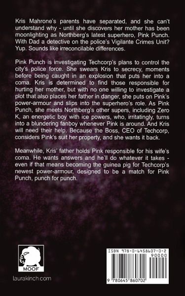 Kris Mahrone's parents have separated, and she can't understand why - until she discovers her mother has been moonlighting as Northberg's latest superhero, Pink Punch. With Dad a detective on the police's Vigilante Crimes Unit? Yup. Sounds like irreconcilable differences. Pink Punch is investigating Techcorp's plans to control the city's police force. She swears Kris to secrecy, moments before being caught in an explosion that puts her into a coma. Kris is determined to find those responsible for hurting her mother, but with no one willing to investigate a plot that also places her father in danger, she puts on Pink's power-armour and slips into the superhero's role. As Pink Punch, she meets Northberg's other supers, including Zero K, an energetic boy with ice powers, who, irritatingly, turns into a blundering fanboy whenever Pink is around. And Kris will need their help. Because the Boss, CEO of Techcorp, considers Pink's suit her property, and she wants it back. Meanwhile, Kris' father holds Pink responsible for his wife's coma. He wants answers and he'll do whatever it takes - even if that means becoming the guinea pig for Techcorp's newest power-armour, designed to be a match for Pink Punch, punch for punch.