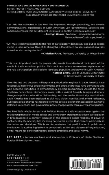 Over the last two decades, military and authoritarian regimes in Latin America have receded as indigenous social movements and popular protests have demanded and won peaceful transitions to democratically-elected governments. Across the entire Southern hemisphere, democracy arose with a radical flourish, bringing dramatic changes in politics, education, civil society, and the media. Historically, revolution in Latin America has been depicted as civil war, violent conflict, and armed resistance, but recent social change has resulted from the political power of mass social movements reflected in elections and government policy change rather than guerrilla insurgencies. The Pink Tide investigates the relationship between media access and democracy, arguing that citizen participation in broadcasting is a primary indicator of the changed social relations of power in each country. Democracy has meaning only to the extent that citizens participate in discussion and decisions. This book demonstrates that participation in public communication is a prime ingredient in democratic action and citizen self-organization, a vital means for constructing new cultural practices and social norms.