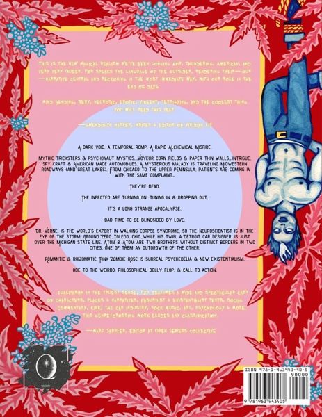 A surreal anarcho-experiment, Pink Zombie Rose: Major Arcana is a genre-defying urban journey through a dystopian landscape. A dark void, a temporal romp. A rapid alchemical misfire. Mythic tricksters & psychonaut mystics...Voyeur corn fields & paper thin walls...intrigue, spy craft & American made automobiles. A mysterious malady is traveling Midwestern roadways (and great lakes). From Chicago to the upper peninsula, patients are coming in with the same complaint-They're dead.The infected are turning on, tuning in & dropping out. It's a long strange apocalypse. Bad time to be blindsided by love. Dr. Verne, is the world's expert in walking corpse syndrome, so the neuroscientist is in the eye of the storm, Ground Zero-Toledo, Ohio-while his twin, a Detroit car designer, is just over the Michigan state line. Aton & Atom are two brothers without distinct borders in two cities, one of them an outgrowth of the other. Romantic & rhizomatic, Pink Zombie Rose is surreal psychedelia & new existentialism. Ode to the weirdo, philosophical belly flop, & call to action.