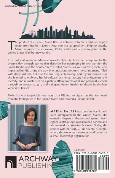 The product of an affair, Maria Balais's entrance into the world was kept a secret from her birth family. After she was adopted by a Filipino couple, Maria acquired the nickname, Pinky, and eventually immigrated to the United States with her new family. In a colorful memoir, Maria chronicles her life from her adoption to the present day through stories that describe her upbringing in two worlds-the South Pacific and the Southeastern United States-as well as the people who impacted her life along the way. Her anecdotes not only reveal moments filled with deep sadness, but also the amusing, celebratory, and joyous moments as she learned to embrace her bi-cultural existence, accept her uniqueness and identity, and ultimately carve a path to attain professional and personal success through perseverance, grit, and a dogged determination to always be the best version of herself. Pinky is the unforgettable true story of a Filipino immigrant as she journeyed from the Philippines to the United States and created a life for herself.
