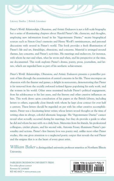 Pinter’s World presents an analysis based on recently published biographies and reminiscences and extensive consultation of Pinter’s archive at the British Library, of his friendships, and obsessions. Topics extend beyond the subject’s drama and screen plays, to his prose, journalism, poetry, letters, and artistic endeavors.