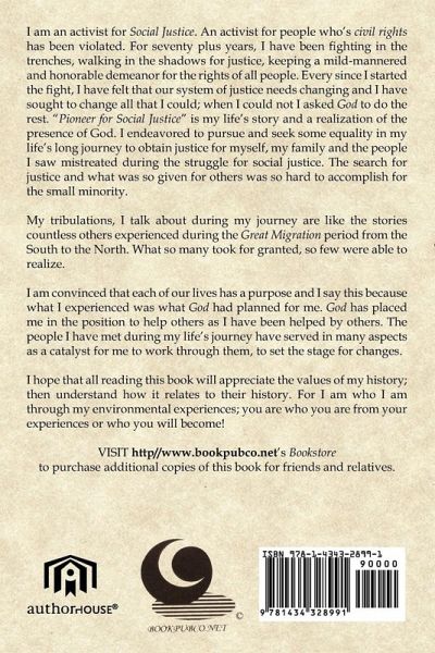 My tribulations, I talk about during my journey are like the stories countless others experienced during the Great Migration period from the South to the North. What so many took for granted, so few were able to realize. I am convinced that each of our lives has a purpose and I say this because what I experienced was what God had planned for me. God has placed me in the position to help others as I have been helped by others. The people I have met during my life's journey have served in many aspects as a catalyst for me to work through them, to set the stage for changes. I hope that all reading this book will appreciate the values of my history; then understand how it relates to their history. For I am who I am through my environmental experiences; you are who you are from your experiences or who you will become! VISIT http//www.bookpubco.net's Bookstore to purchase additional copies of this book for friends and relatives.