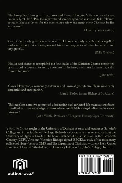 'This account of a fascinating and neglected life makes a significant contribution to our knowledge of twentieth century British evangelicalism and overseas missions.' (John Wolffe, Professor of Religious History, Open University) 'The family lived through stirring times and Canon Houghton's life was one of some drama, subject like St Paul to shipwreck and some dangers on the mission field, followed by much labour at home for the missionary society and many other Christian bodies and causes.' (Timothy Yates, author) 'One of the Lord's great servants on earth. He was not only a dedicated evangelical leader in Britain, but a warm personal friend and supporter of mine for which I am very grateful.' (Billy Graham) 'His life and character exemplified the four marks of the Christian Church mentioned by our Lord: a concern for truth, a concern for holiness, a concern for mission, and a concern for unity.' (John Stott) 'Canon Houghton, a missionary statesman and a man of great stature. He was invariably supportive and encouraging.' (John B. Taylor, former Bishop of St Albans)
