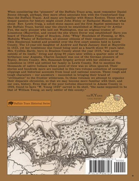 This volume is part of a two-volume set that contains over 1,000 local and national articles, from historical newspapers and other publications, relating to the pioneer history of the area of northeastern Kentucky known as the "Buffalo Trace," including the counties of Mason, Bracken, Fleming, Robertson and Lewis, and the adjacent Ohio counties of Adams and Brown.