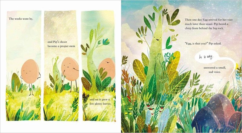 Pip and Egg are like two peas in a pod. But as their friendship grows, so do they - for Pip this means growingroots, but Egg grows wings, and she can't wait to use them. Though Pip wishes he can follow Egg on her adventures, his rootsare strong. So he watches his friend fly away. But true friends alwaysfind their way back to each other.