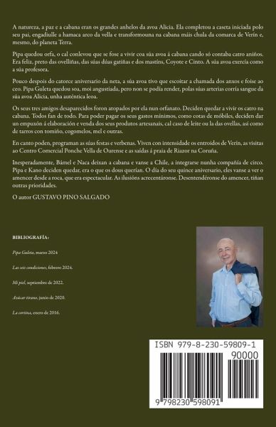 A natureza, a paz e a cabana eran os grandes anhelos da avoa Alicia. Ela completou a caseta iniciada polo seu pai, engadiulle a hamaca arco da vella e transformouna na cabana máis chula da comarca de Verín e, mesmo, do planeta Terra. Pipa quedou orfa, o cal conlevou que se fose a vivir coa súa avoa á cabana cando só contaba catro aniños. Era feliz, preto das ovelliñas, das súas dúas gatiñas e dos mastíns, Coyote e Cinto. A súa avoa exercía como a súa profesora. Pouco despois do catorce aniversario da neta, a súa avoa tivo que escoitar a chamada dos anxos e foise ao ceo. Pipa Guleta quedou soa, moi angustiada, pero non se podía render, polas súas arterias corría sangue da súa avoa Alicia, unha auténtica leoa. Os seus tres amigos desaparecidos foron atopados por ela nun orfanato. Deciden quedar a vivir os catro na cabana. Todos fan de todo. Para poder pagar os seus gastos mínimos, como cotas de móbiles, deciden dar un empuxón á elaboración e venda dos seus produtos artesanais, cal caso de leite ou la das ovellas, así como de tarros con tomiño, cogomelos, mel e outras. En canto poden, programan as súas festas e verbenas. Viven con intensidade os entroidos de Verín, as visitas ao Centro Comercial Ponche Vella de Ourense e as saídas á praia de Riazor na Coruña. Inesperadamente, Bámel e Naca deixan a cabana e vanse a Chile, a integrarse nunha compañía de circo. Pipa e Kano deciden quedar, era o que os dous querían. O día do seu quince aniversario, eles vanse a ver o amencer desde a roca, que era espectacular. As ilusións acrecentáronse. Desentendéronse do amencer, tiñan outras prioridades. O autor GUSTAVO PINO SALGADO