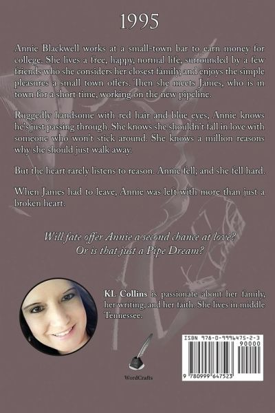 1995. Annie Blackwell works at a small-town bar to earn money for college. She lives a free, happy, normal life, surrounded by friends who are more like family, and enjoys the simple pleasures a small town offers. Then she meets James, who is in town for a few months working on the new pipeline. Ruggedly handsome with red hair and blue eyes, Annie knows he's just passing through. She knows she shouldn't fall in love with someone who won't stick around. She knows a million reasons she should just walk away. But the heart rarely listens to reason. Annie fell; and she fell hard. James left a few months later, leaving her with more than a broken heart. Will fate offer Annie a second chance at love? Or is that just a Pipe Dream?