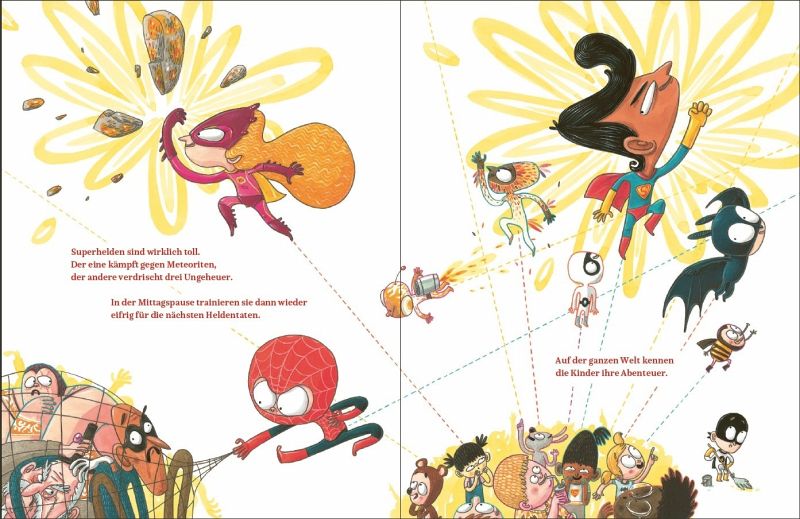 Die Geschichte ist einfach niedlich und zugleich auch sehr witzig angelegt. es geht um die verschiednen Superhelden und auf diese wird hier auch eingegangen. Doch als ein großes Monster auftaucht sind die berühmten Superhelden nicht zur Stelle. Nun ist es Zeit für einen neuen Helden. Kann er das allein schaffen?