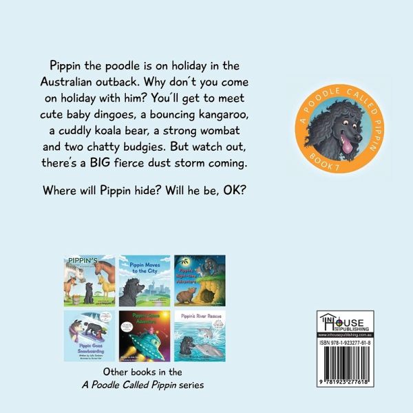 A captivating adventure story for young children. Pippin the poodle is on holiday in the Australian outback. Yoüll get to meet cute baby dingoes, a bouncing kangaroo, a cuddly koala bear, a strong wombat and two chatty budgies. But watch out, there's a BIG fierce dust storm coming. Where will Pippin hide? Will he be, OK? This picture book features bonus activities and interactive elements. "Pippin's Outback Adventure" explores themes of friendship, kindness, and helping those in need, making it a heartwarming read for young children.