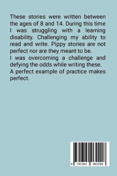 These stories were written between the ages of 8 and 14. During this time I was struggling with a learning disability. Challenging my ability to read and write. Pippy stories are not perfect nor are they meant to be. I was overcoming a challenge and defying the odds while writing these. A perfect example of practice makes perfect.