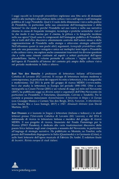 I saggi raccolti in Iconografie pirandelliane esplorano una fitta serie di domande relative alle molteplici sfaccettature della cultura visiva nell'opera e nell'immagine pubblica di Luigi Pirandello. Qual è il ruolo della dimensione visiva nella poetica di Pirandello, in particolare nella sua concezione dell'immaginazione e della fantasia? In che modo e perché Pirandello nel suo teatro e nella sua narrativa chiama in causa di frequente immagini, tecnologie e pratiche semiotiche visive? In che modo il suo fascino per il cinema, la pittura e la fotografia incidono sulla sua opera? Quali sono le componenti dell'immagine pubblica di Pirandello, che si tratti dell'ethos discorsivo attentamente costruito dall'autore stesso o della rappresentazione di Pirandello nella stampa e attraverso strategie editoriali? Nell'affrontare questi (e non pochi altri) argomenti, Iconografie pirandelliane offre non solo una panoramica variegata e unica sui molteplici temi legati a Pirandello e alla cultura visiva, ma esplora anche connessioni trasversali tra diverse questioni che a volte sono rimaste confinate ad aspetti o settori particolari dell'opera pirandelliana. Inoltre, il volume permette di collocare i «regimi di visualità» dell'opera di Pirandello all'interno del contesto più ampio della cultura visiva nel periodo modernista in Italia e altrove.